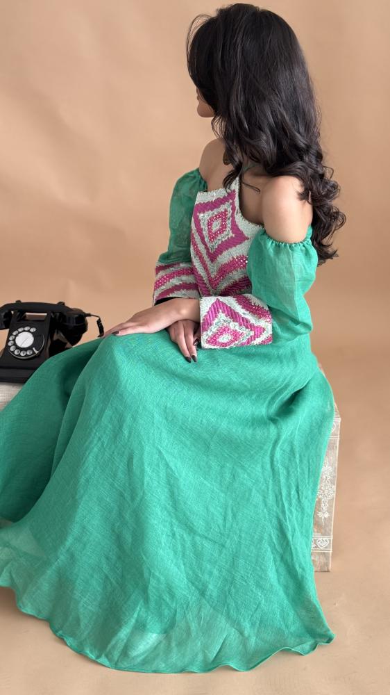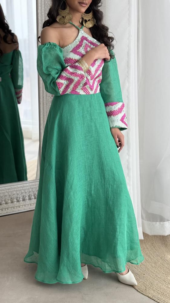 قطعه مميزه من قماش الينن الطبيعي مع اضافه قماش الشك التركي