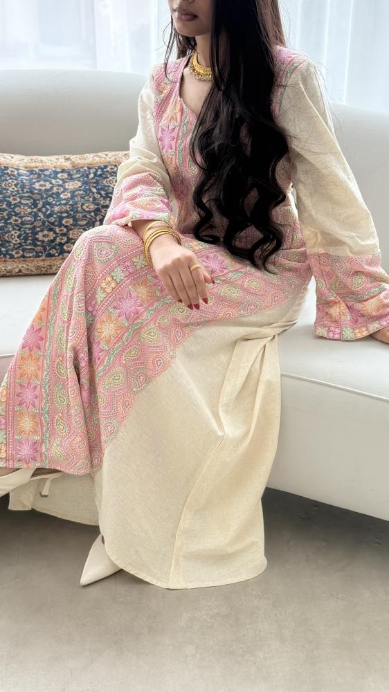 قطعه بقماش اللنن البارد واضافه قماش الشك الهندي