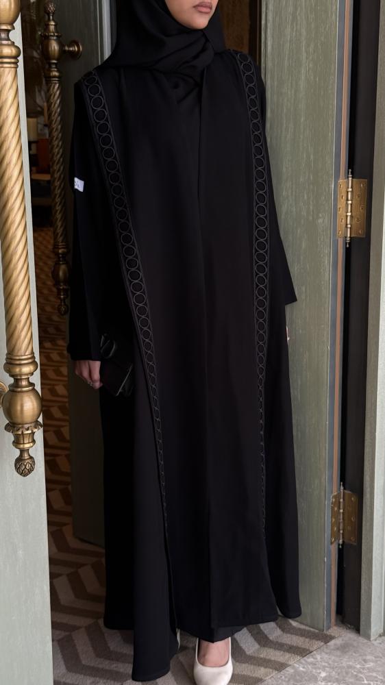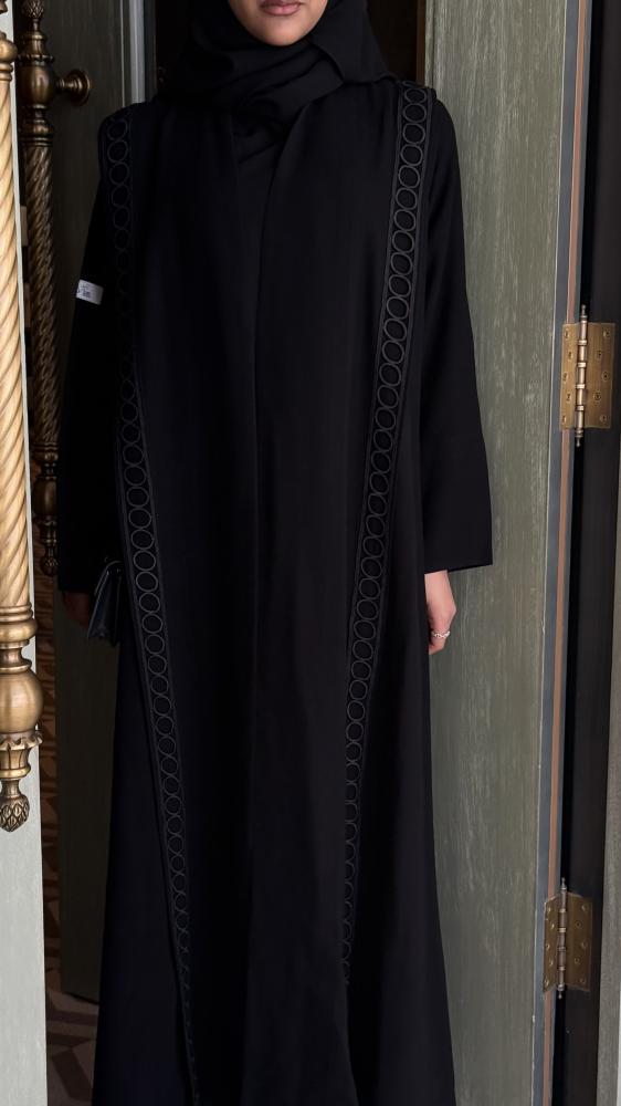 عبايه انيقه بسواد فاحم بقماش كوري ، الملحقات : طرحه