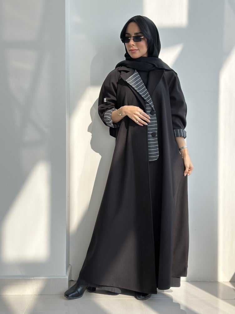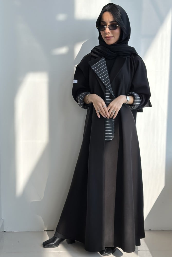 عبايه شتويه انيقه بقماش الجوخ مع اضافه الجوخ المقلم ، الملحقات : طرحه