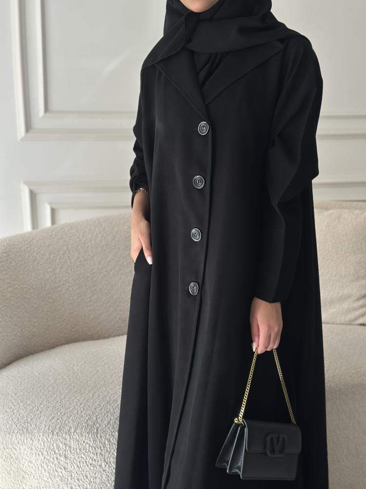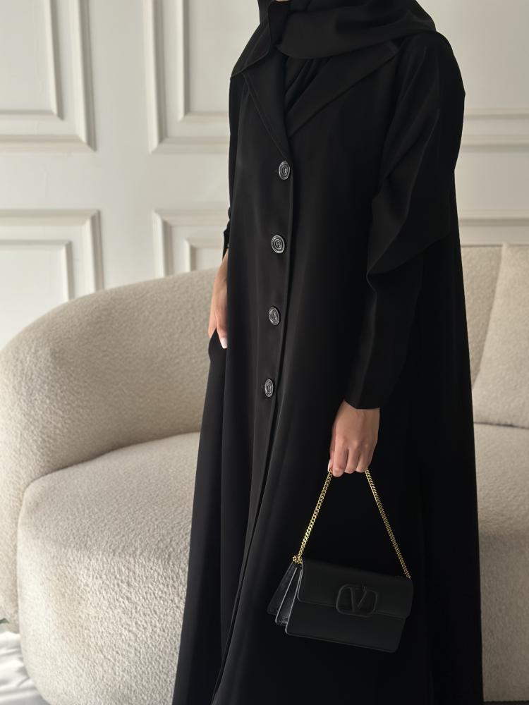 عبايه انيقه نص كلوش مع اضافه جيوب مخفيه بقماش فاخر خاص فينا ، الملحقات ؛ طرحه
