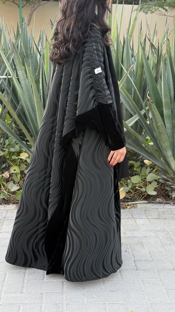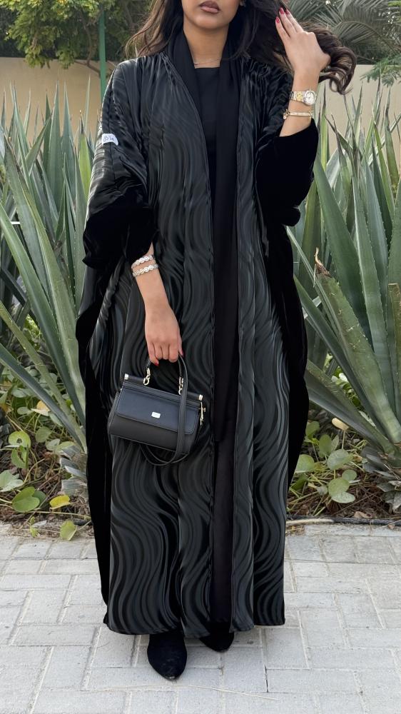 عبايه انيقه شتويه بقصه نص بشت بقماش المخمل والجلد الناعم ، الملحقات : طرحه